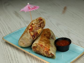 Egg, Ham, Sausage, Bacon, Hashbrowns, Cheese, And Pico de Gallo
